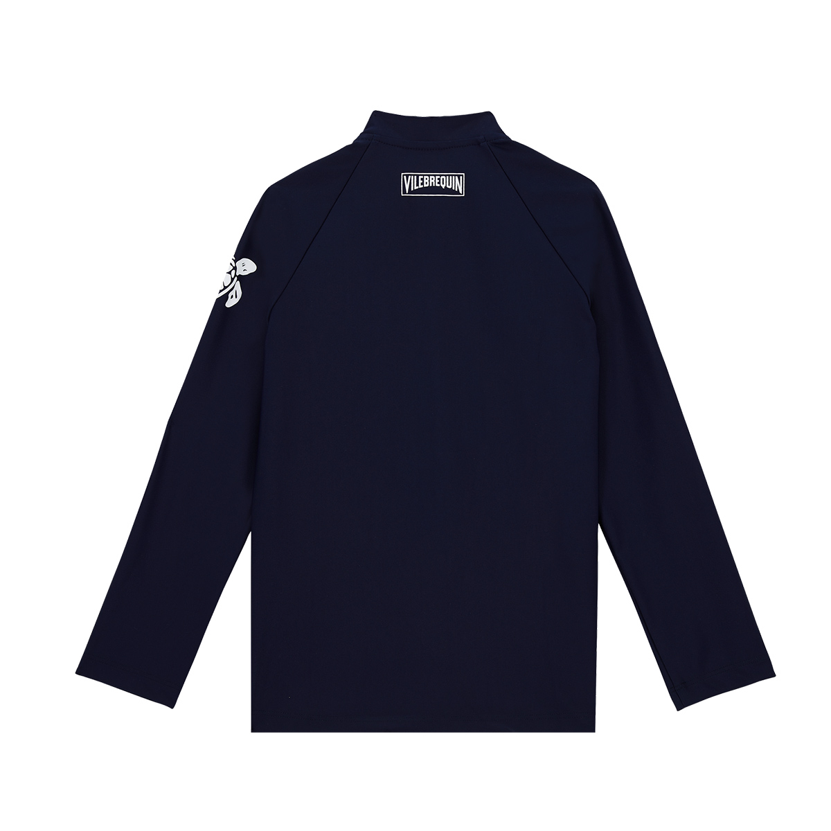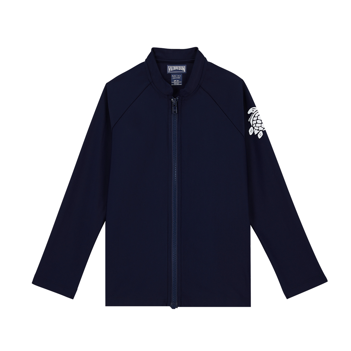 Uzun kollu ve kolay giyilip çıkarılabilen fermuarlı ön kısmıyla maksimum UV koruması sağlayan çocuk tişörtü.