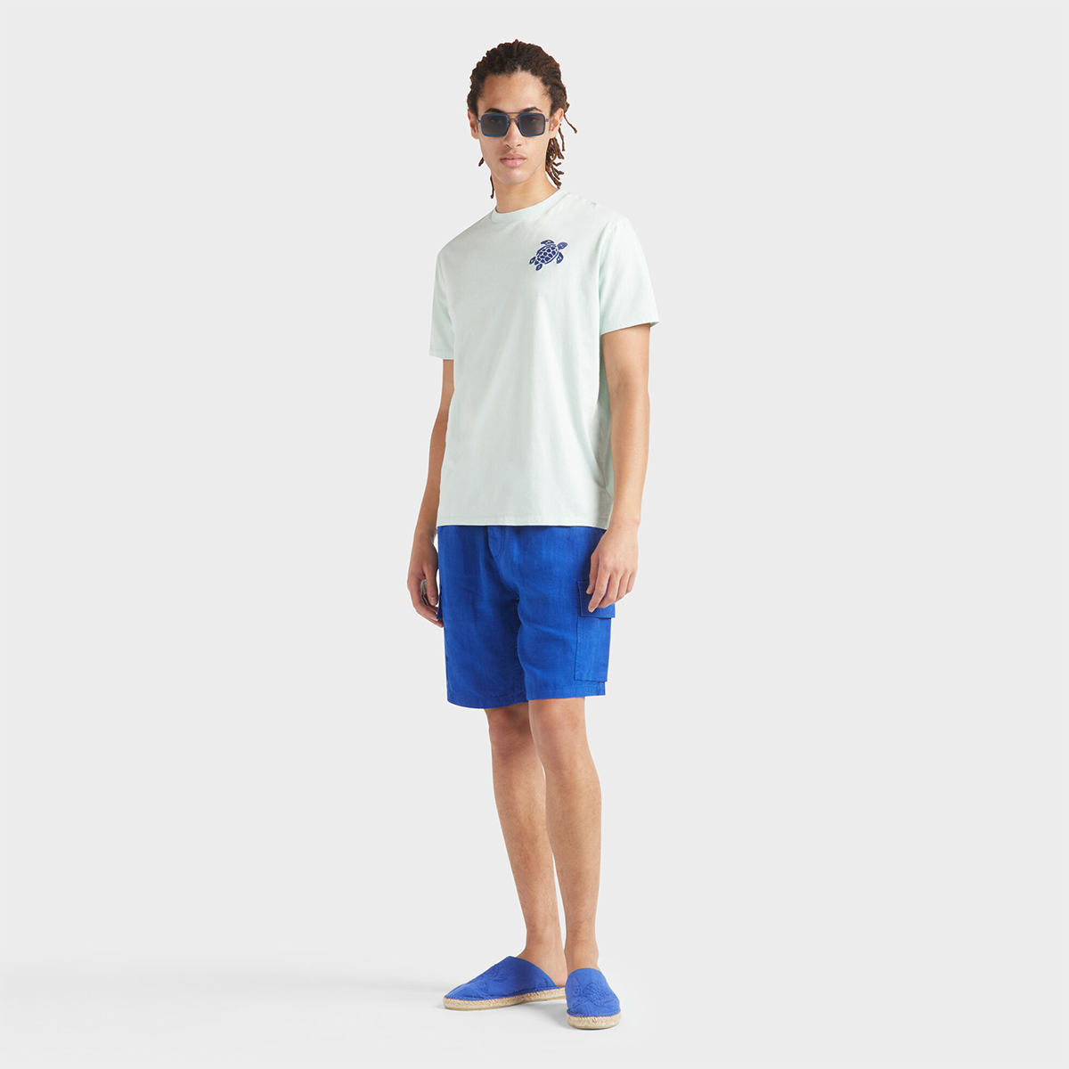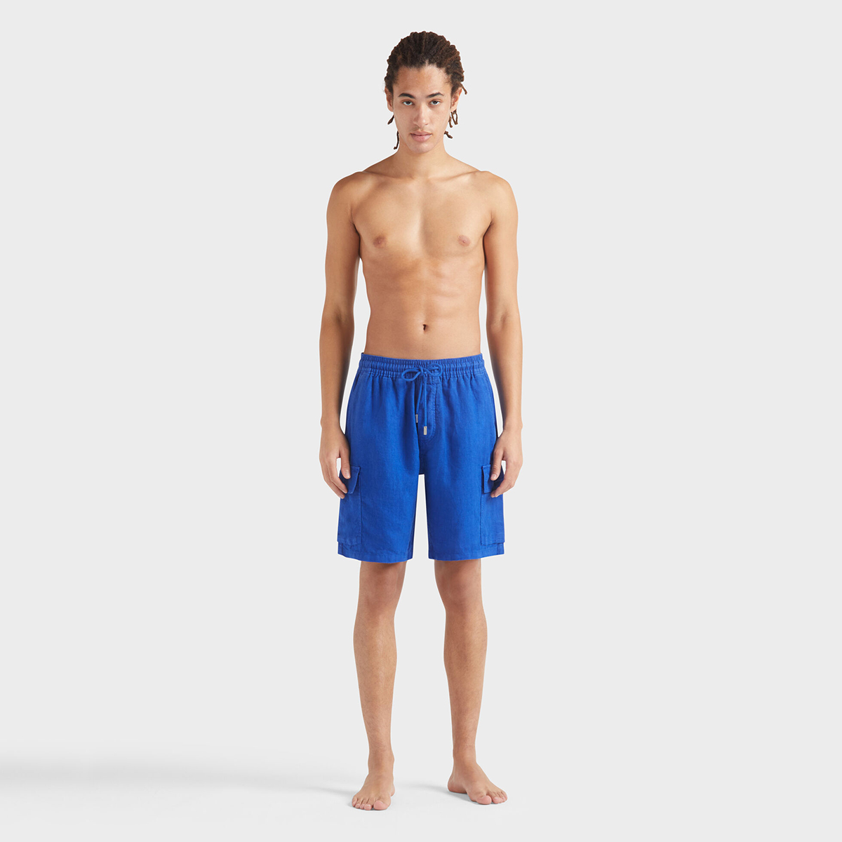 Esnek ve rahat keten kumaştan üretilen, zamansız ve rahat erkek bermuda şortları, Vilebrequin koleksiyonunun önemli bir parçasıdır.