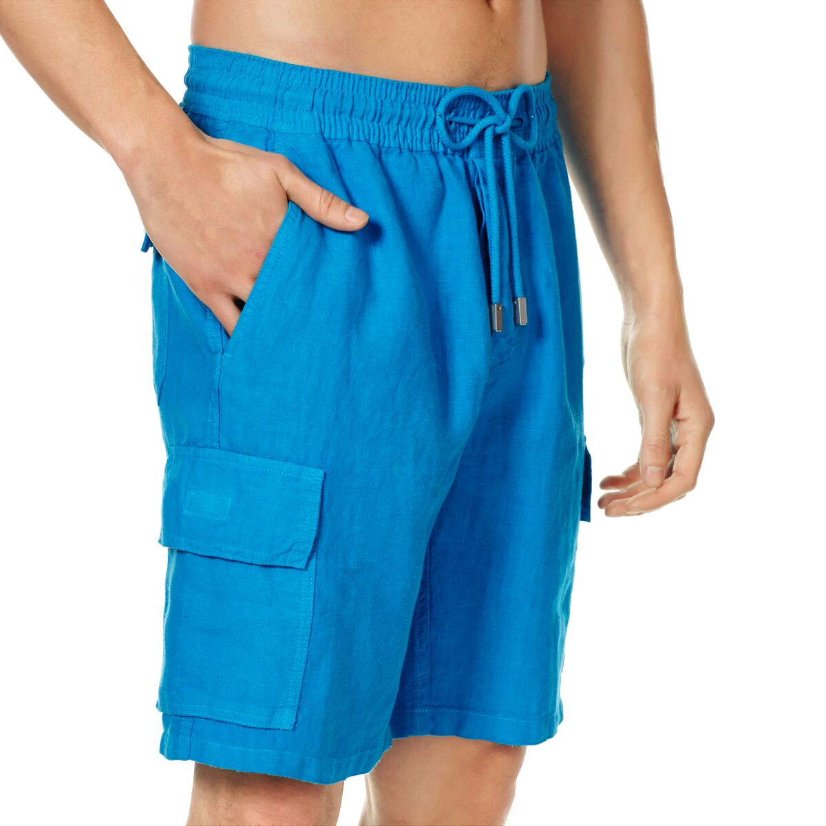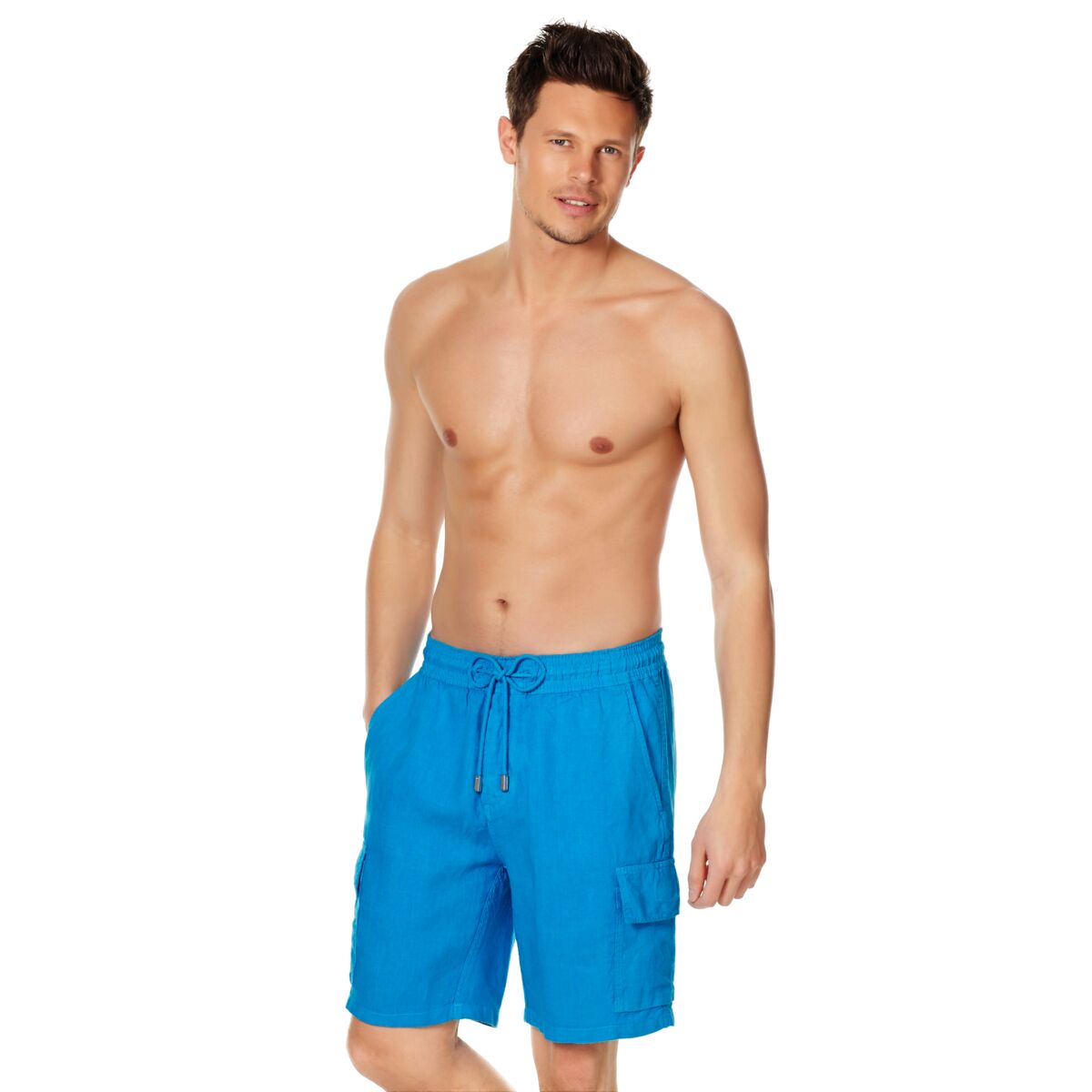 Esnek ve rahat keten kumaştan üretilen, zamansız ve rahat Baie erkek bermuda şortları, Vilebrequin koleksiyonunun önemli bir parçasıdır.