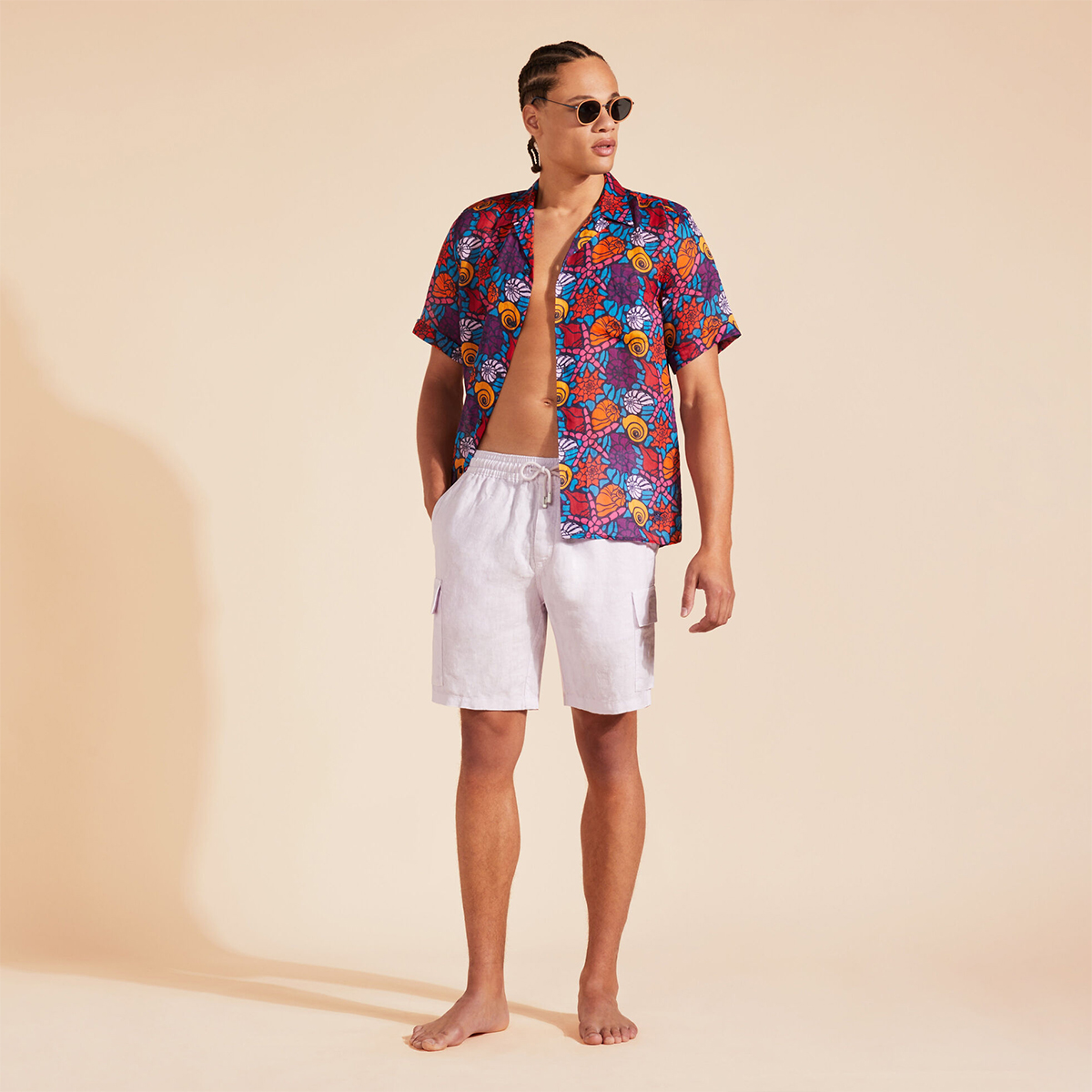 Esnek ve rahat keten kumaştan üretilen, zamansız ve rahat Baie erkek bermuda şortları, Vilebrequin koleksiyonunun önemli bir parçasıdır.