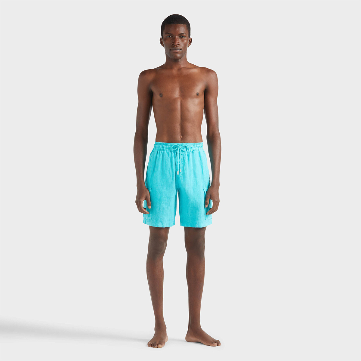 Esnek ve rahat keten kumaştan üretilen, zamansız ve rahat erkek bermuda şortları, Vilebrequin koleksiyonunun önemli bir parçasıdır.