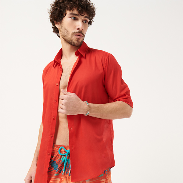 Yumuşak ve hafif pamuklu kumaşı ile Vilebrequin Caracal gömlek her stile uygundur. Zamansız bir stil ve mutlak konfor sağlayan bu uzun kollu gömlek önündeki aynı tonda işlemeli ikonik kaplumbağa logosuyla dikkat çekiyor.
