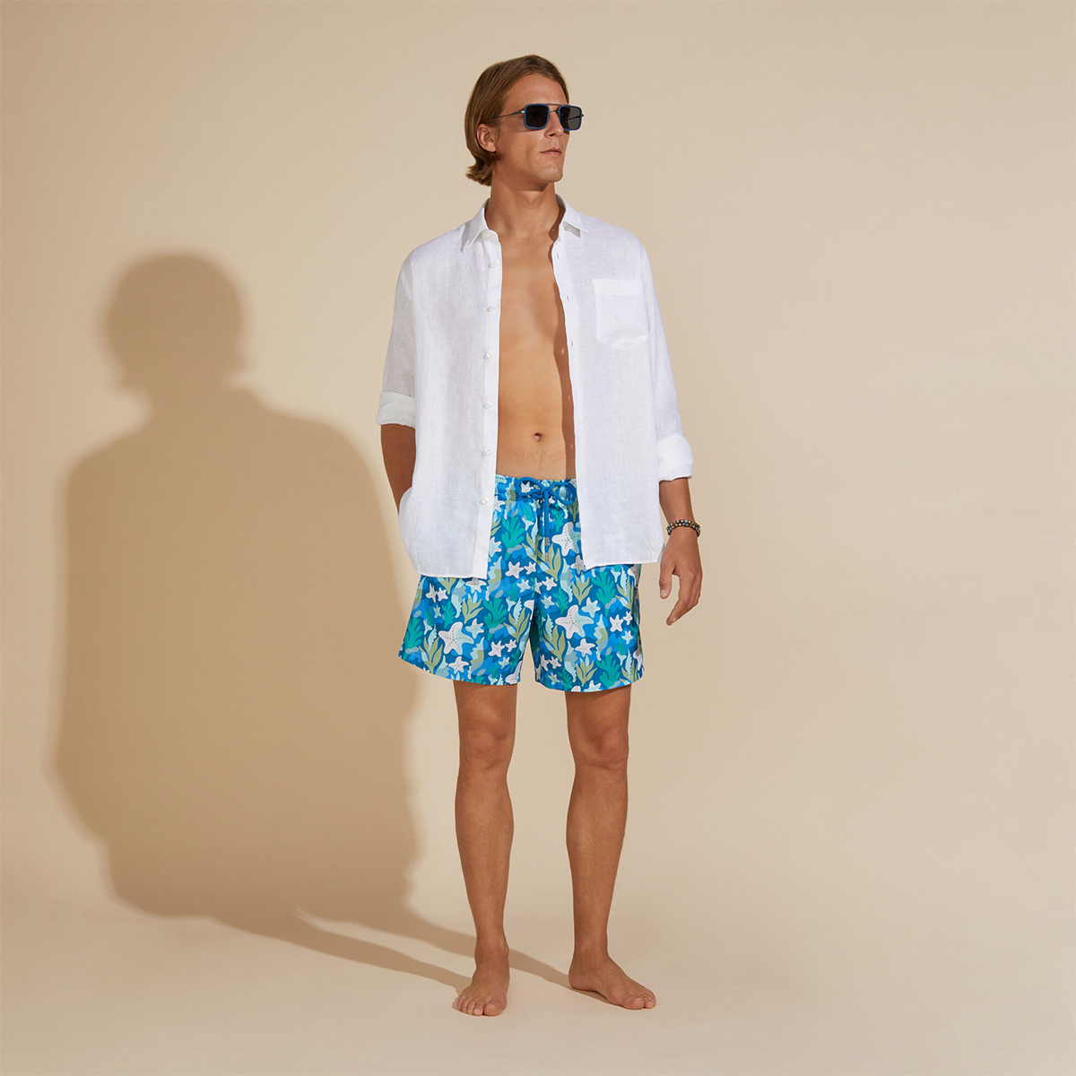 Uzun kollu keten gömlekler, Vilebrequin’in St Tropez’den ilham alan stilini klasik, sade bir kesimle gösteriyor. Yumuşak keten kumaştan yapılmış bu gömlek, eteğinde aynı tonda işlenmiş ikonik kaplumbağa logosu ile dikkat çekiyor.