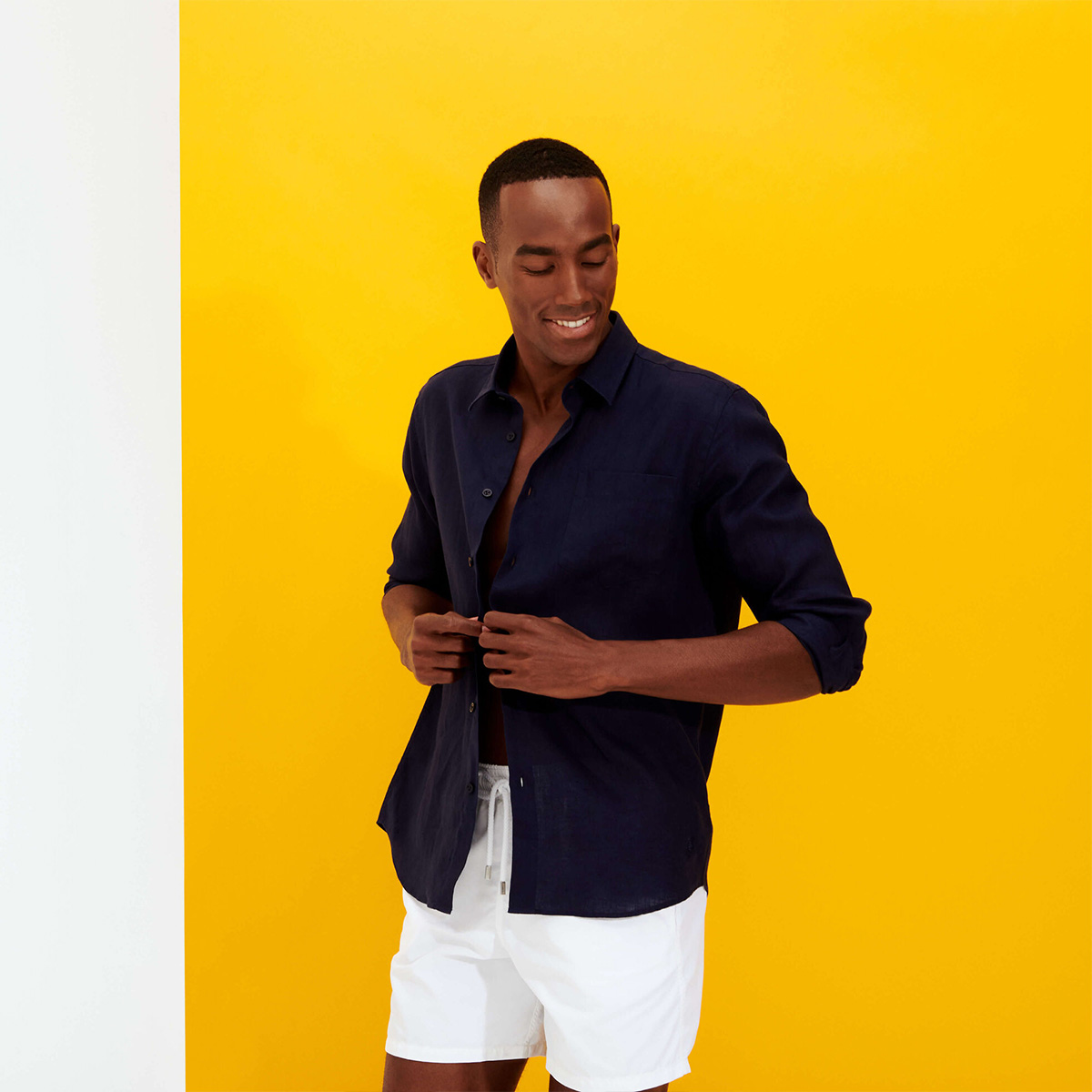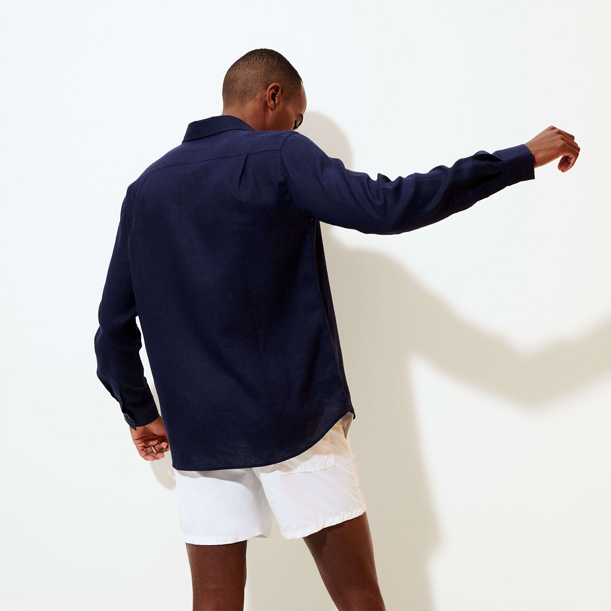 Uzun kollu keten gömlekler, Vilebrequin’in St Tropez’den ilham alan stilini klasik, sade bir kesimle gösteriyor. Yumuşak keten kumaştan yapılmış bu gömlek, eteğinde aynı tonda işlenmiş ikonik kaplumbağa logosu ile dikkat çekiyor.