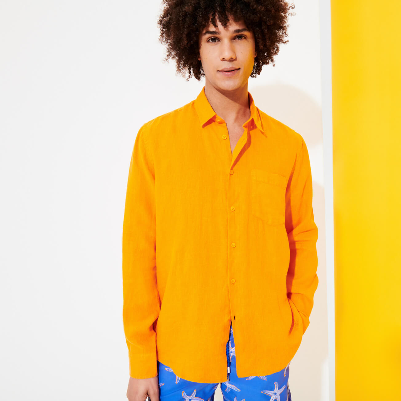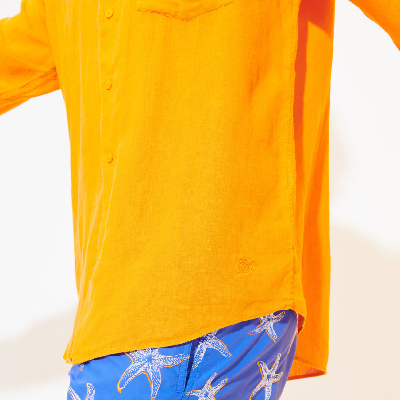 Yaz aylarında ketenden daha rahat giyilebilecek bir malzeme yoktur. Çok hafif, Caroubis erkek gömleği sade ve çeşitli renklerde geliyor. Yazlık ve zarif bu %100 keten gömlek, ilişkilendirildiği parçalara bağlı olarak bazen rahat, bazen daha şık bir görünüm yaratır.