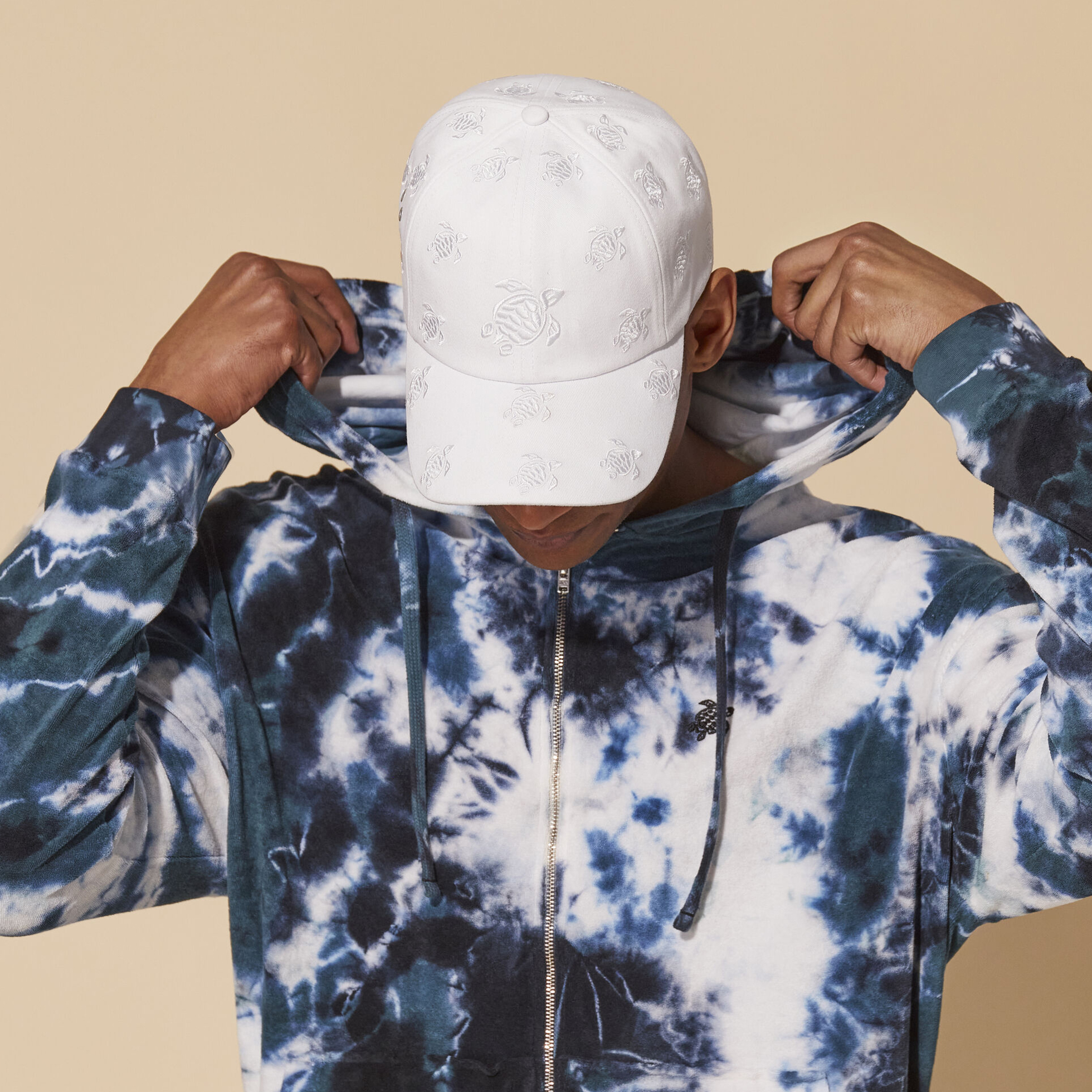 Plajın ve şehrin vazgeçilmezi, Vilebrequin klasiği bu unisex yetişkin şapkalar aynı tonda işlemeli ikonik kaplumbağaları ile dikkat çekiyor.