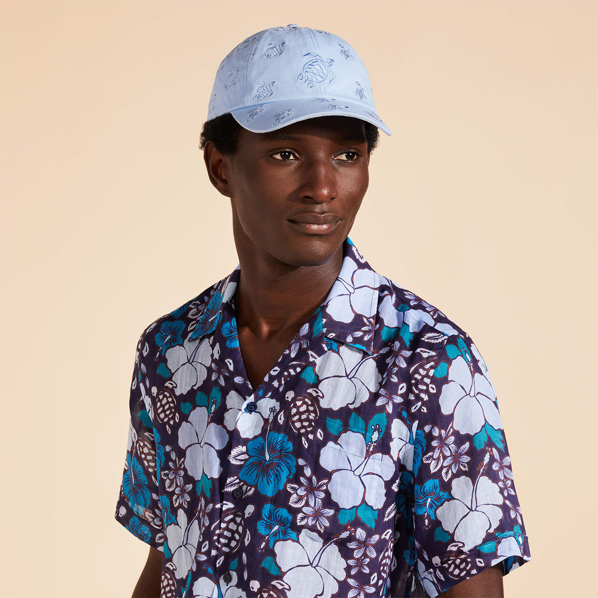 Plajın ve şehrin vazgeçilmezi, Vilebrequin klasiği bu unisex yetişkin şapkalar aynı tonda işlemeli ikonik kaplumbağalar ile dikkat çekiyor.
