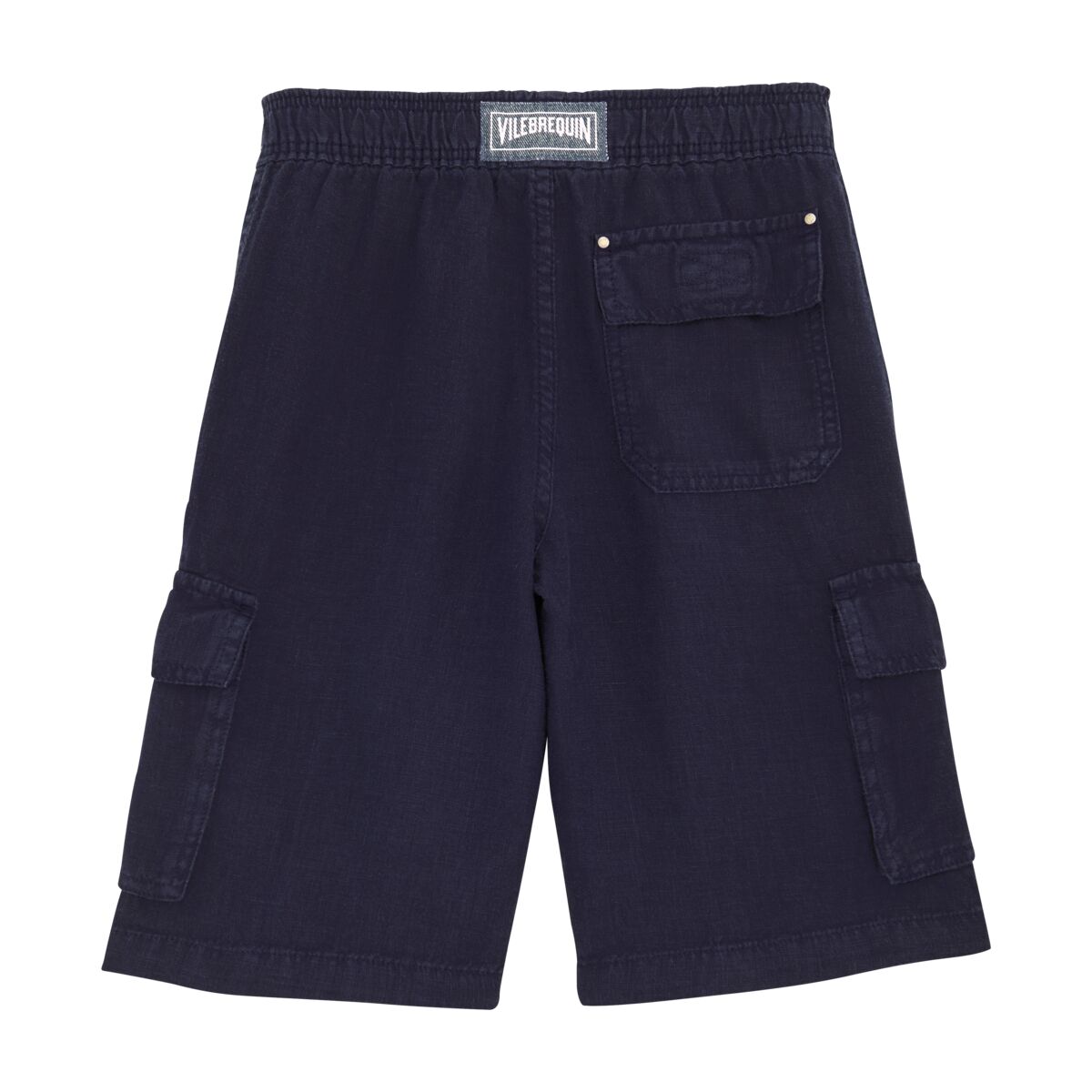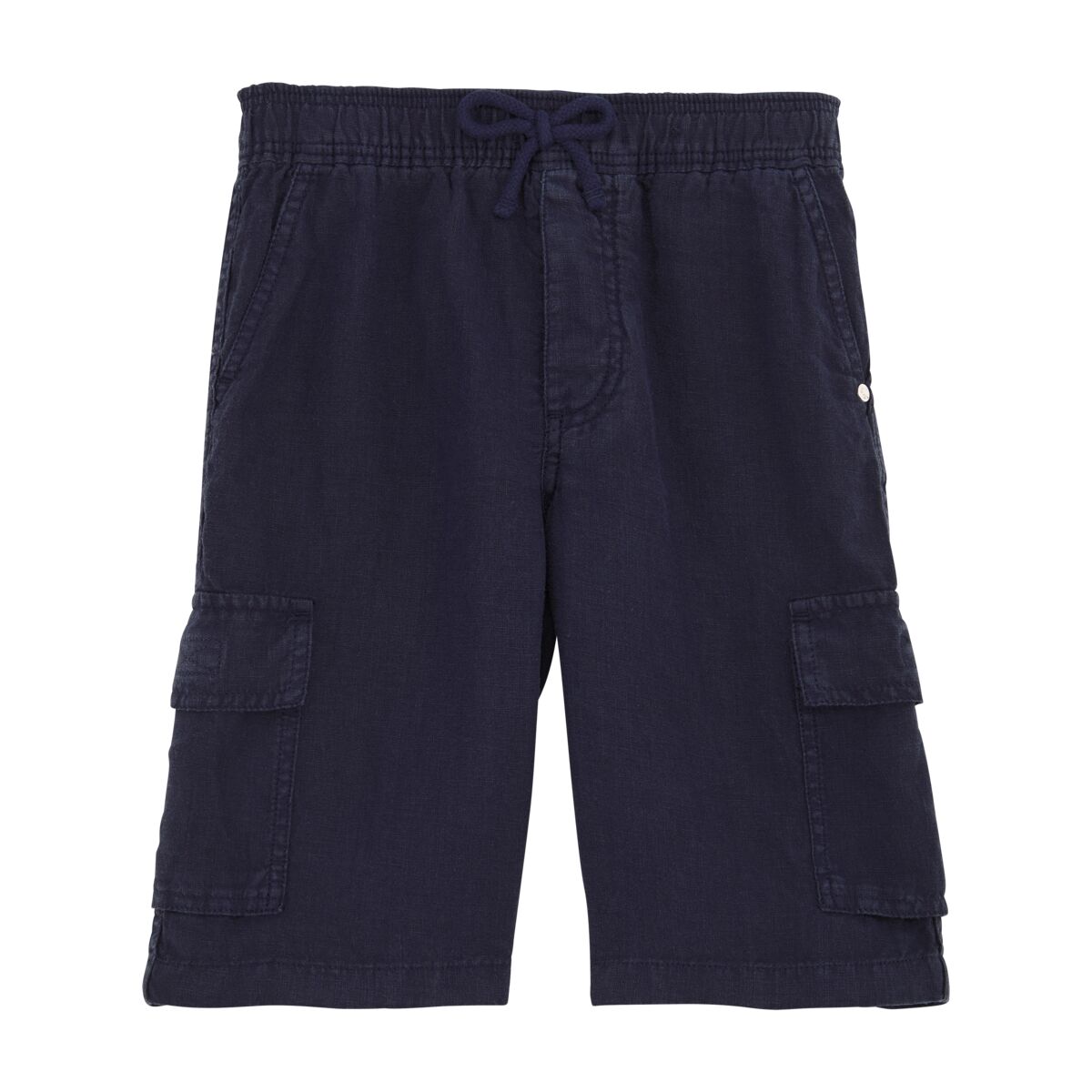 Esnek ve rahat keten kumaştan üretilen, zamansız ve rahak Baiki erkek çocuk bermuda şortları, Vilebrequin koleksiyonunun önemli bir parçasıdır.