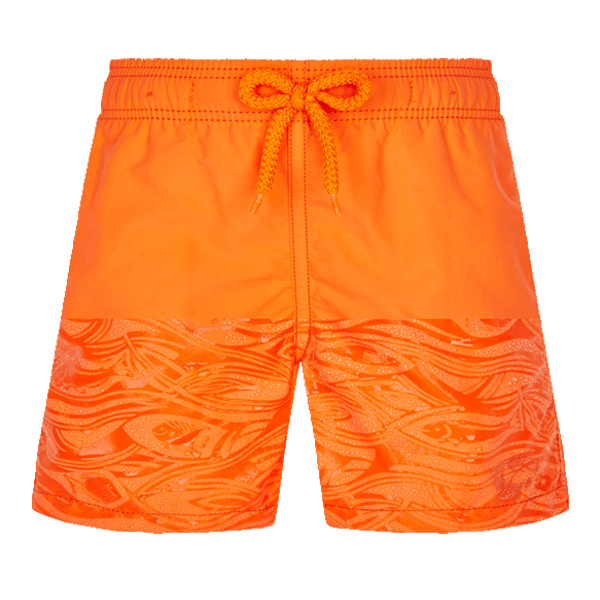 Bu Water-Reactive erkek çocuk mayolarının üzerindeki su desenleri saklambaç oynuyor çünkü ıslandığında ortaya çıkıyorlar ve kuruduğunda kayboluyorlar. Kuruduğunda düz renk olan bu mayolar, kumaş suyla temas eder etmez neşeli desenlerle kaplanır. •Elastik kemer