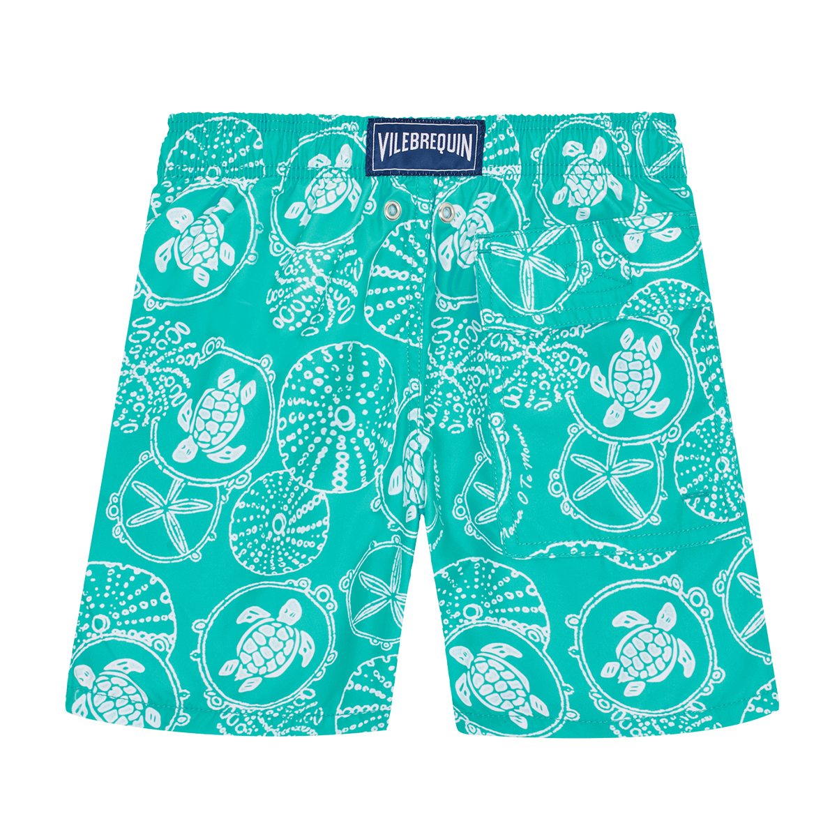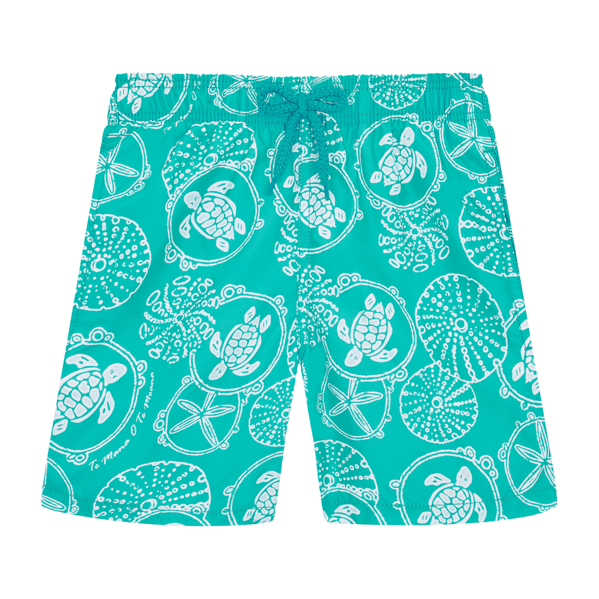 Yumuşak ve hafif Jirise erkek çocuk yüzme şortu, streç kalıbıyla Vilebrequin tasarımına yeni bir yorum getiriyor. Erkek Moorise modelinin çocuklar için uyarlanmış bu versiyonu iki yan ceplerine ek olarak sabit bir düğüme, elastik bel bandına ve arka cebe sahiptir.