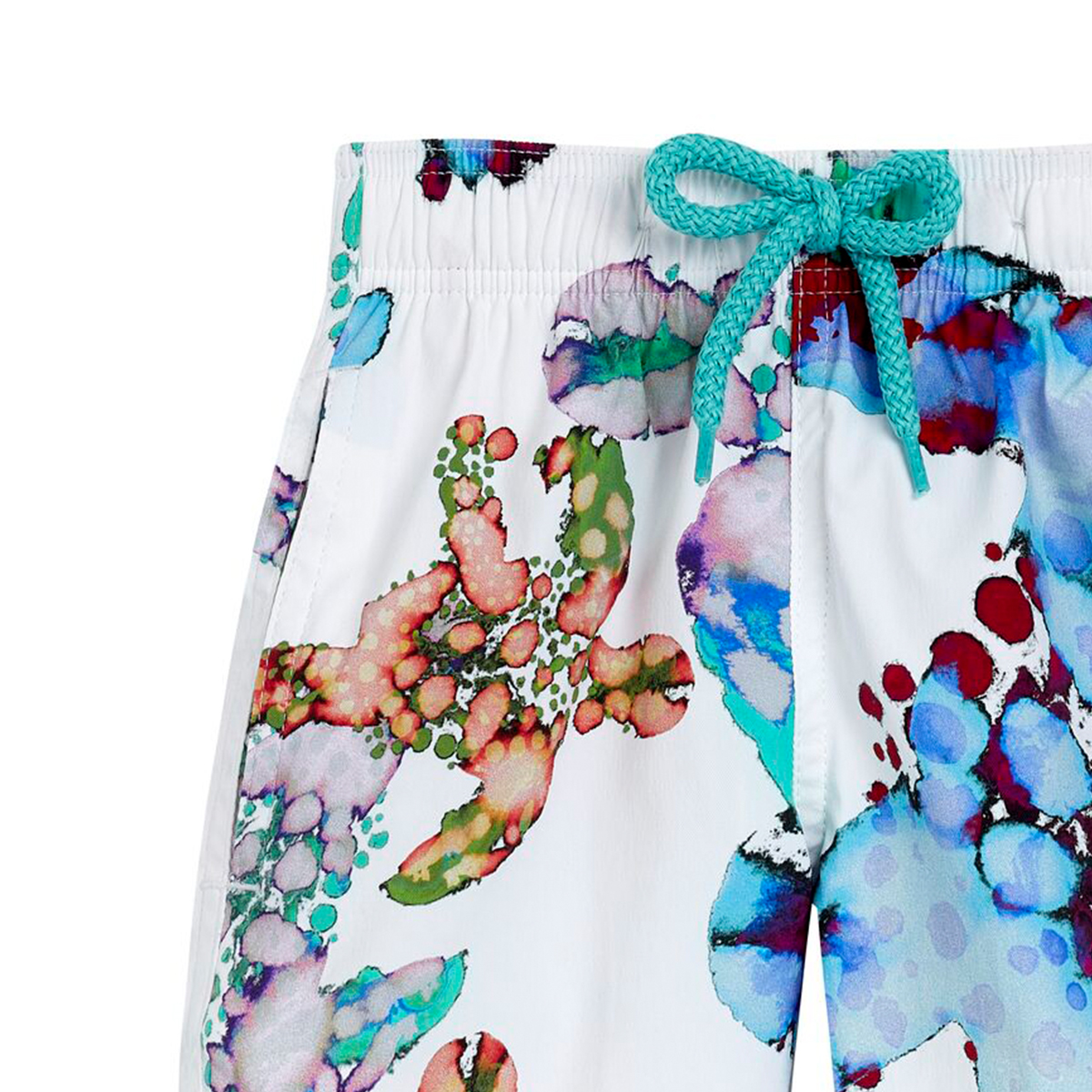 Yumuşak ve hafif Jirise erkek çocuk yüzme şortu, streç kalıbıyla Vilebrequin tasarımına yeni bir yorum getiriyor. Erkek Moorise modelinin çocuklar için uyarlanmış bu versiyonu iki yan ceplerine ek olarak sabit bir düğüme, elastik bel bandına ve arka cebe sahiptir.