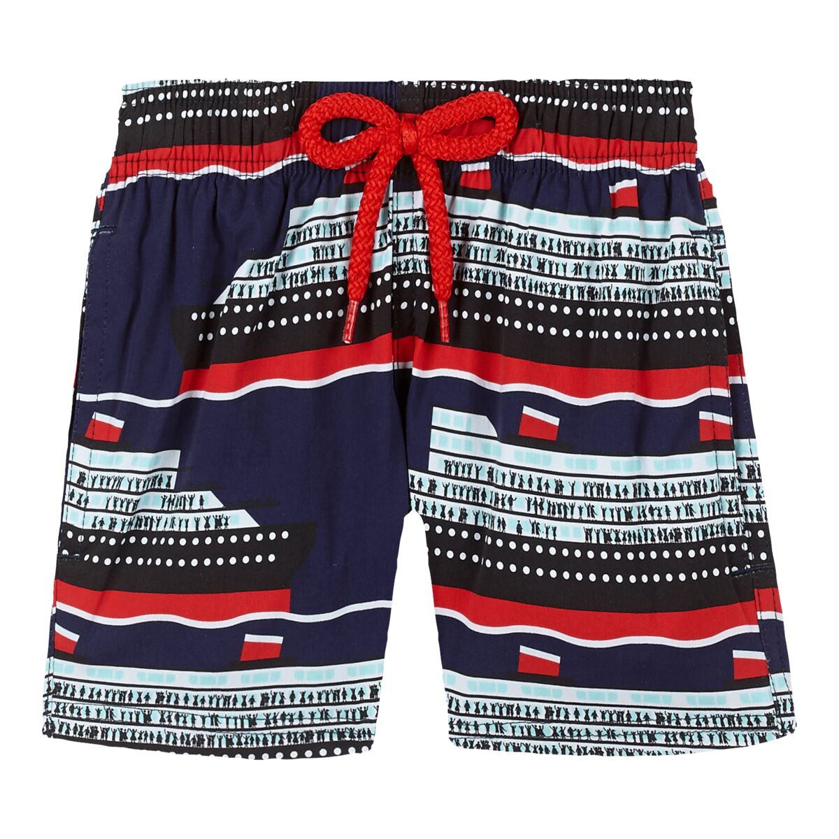 Yumuşak ve hafif Jirise erkek çocuk yüzme şortu, streç kalıbıyla Vilebrequin tasarımına yeni bir yorum getiriyor. Erkek Moorise modelinin çocuklar için uyarlanmış bu versiyonu iki yan ceplerine ek olarak sabit bir düğüme, elastik bel bandına ve arka cebe sahiptir.