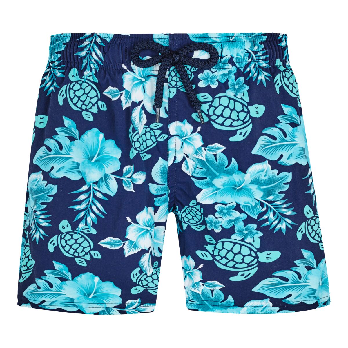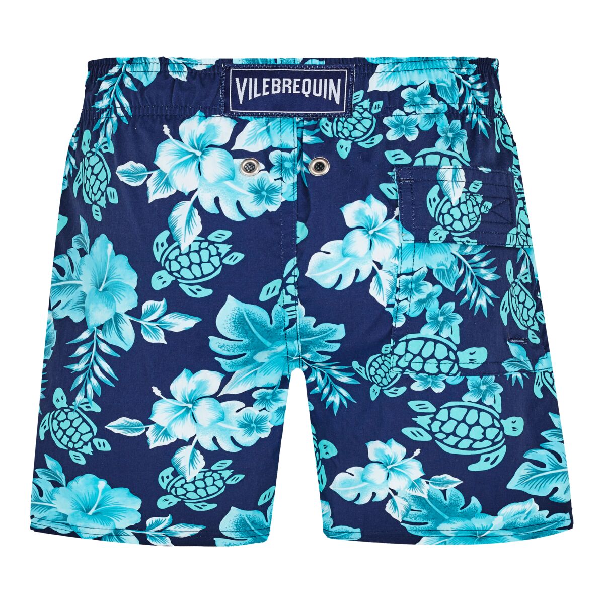 Yumuşak ve hafif Jirise erkek çocuk yüzme şortu, streç kalıbıyla Vilebrequin tasarımına yeni bir yorum getiriyor. Erkek Moorise modelinin çocuklar için uyarlanmış bu versiyonu iki yan ceplerine ek olarak sabit bir düğüme, elastik bel bandına ve arka cebe sahiptir.