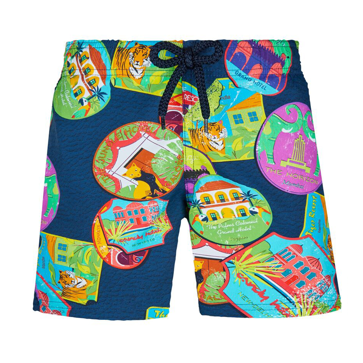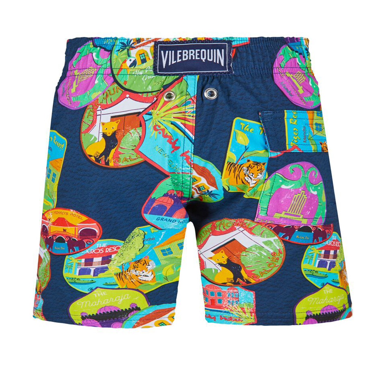 Yumuşak ve hafif Jirise erkek çocuk yüzme şortu, streç kalıbıyla Vilebrequin tasarımına yeni bir yorum getiriyor. Erkek Moorise modelinin çocuklar için uyarlanmış bu versiyonu iki yan ceplerine ek olarak sabit bir düğüme, elastik bel bandına ve arka cebe sahiptir.