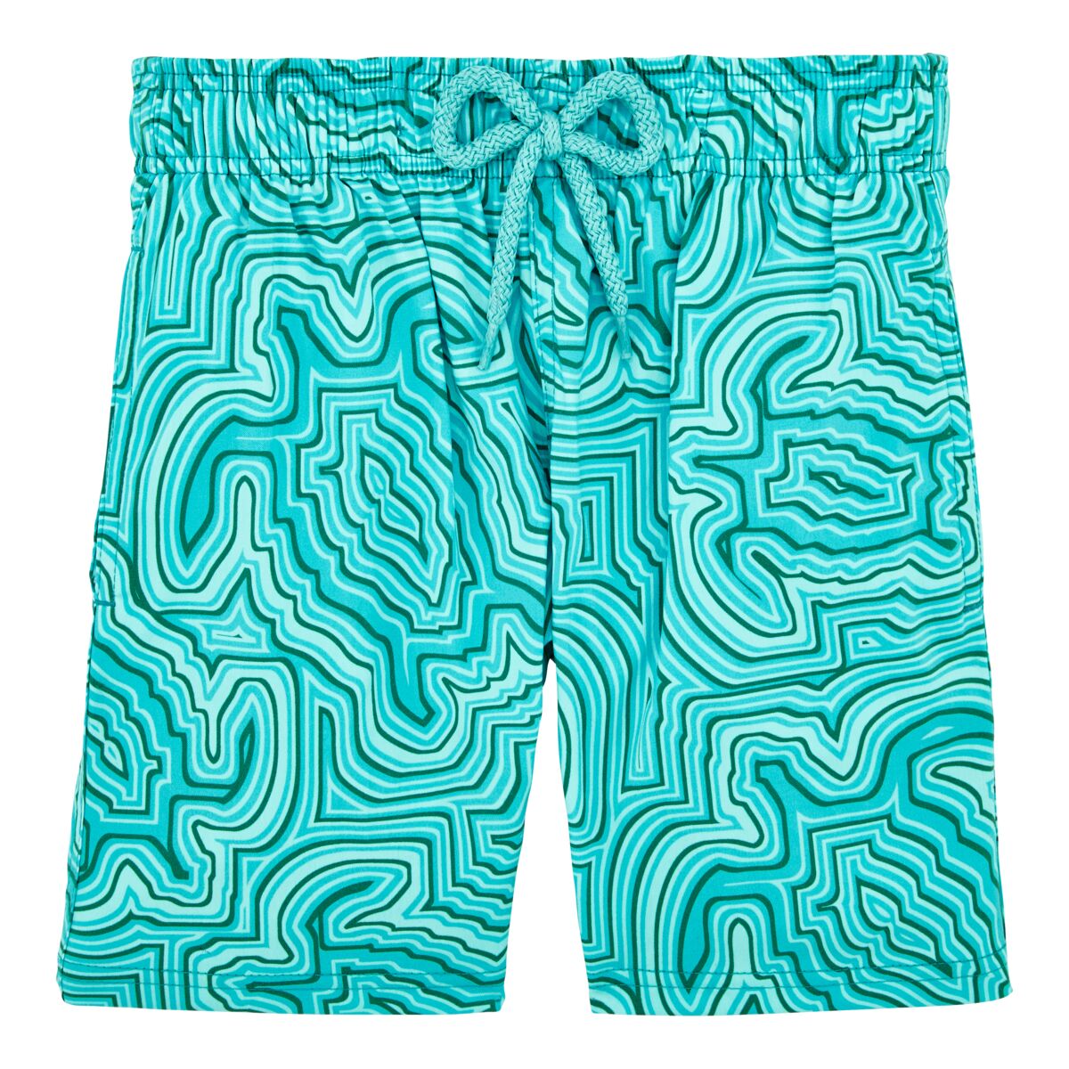 Yumuşak ve hafif Jirise erkek çocuk yüzme şortu, streç kalıbıyla Vilebrequin tasarımına yeni bir yorum getiriyor. Erkek Moorise modelinin çocuklar için uyarlanmış bu versiyonu iki yan ceplerine ek olarak sabit bir düğüme, elastik bel bandına ve arka cebe sahiptir.