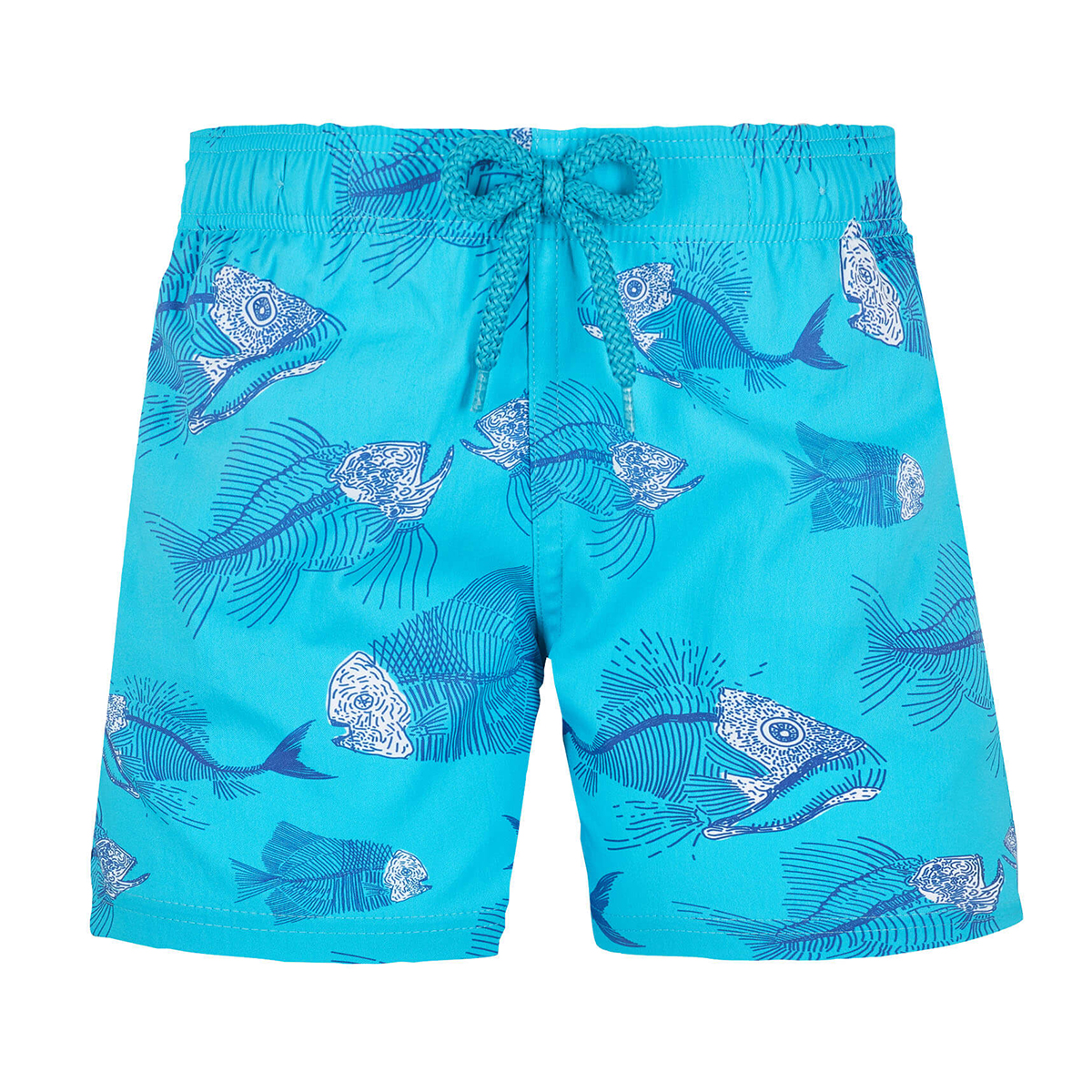 Yumuşak ve hafif Jirise erkek çocuk yüzme şortu, streç kalıbıyla Vilebrequin tasarımına yeni bir yorum getiriyor. Erkek Moorise modelinin çocuklar için uyarlanmış bu versiyonu iki yan ceplerine ek olarak sabit bir düğüme, elastik bel bandına ve arka cebe sahiptir.