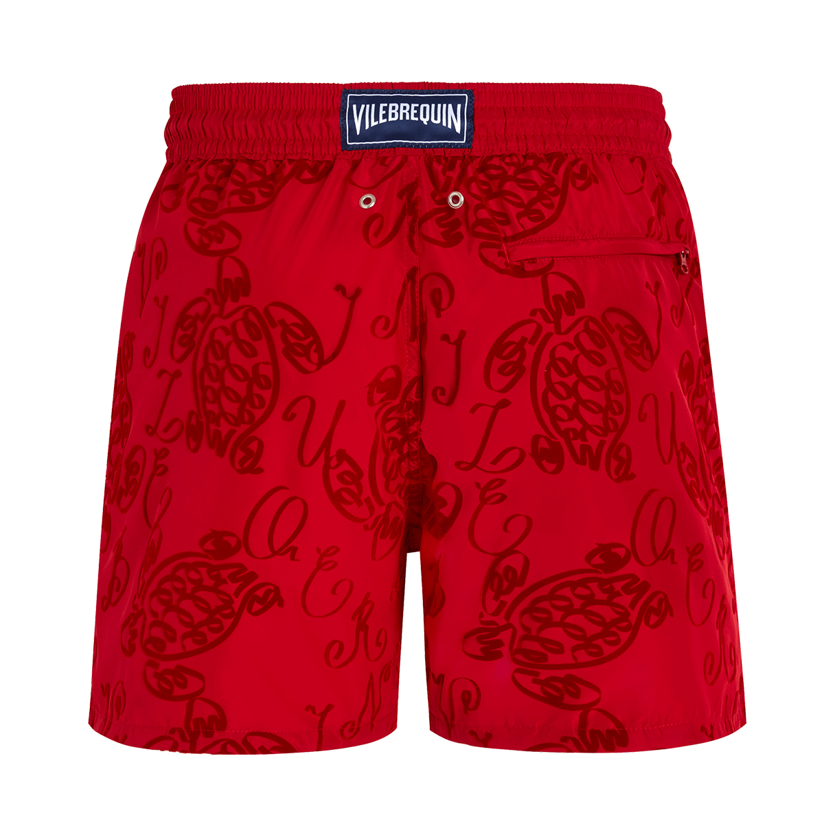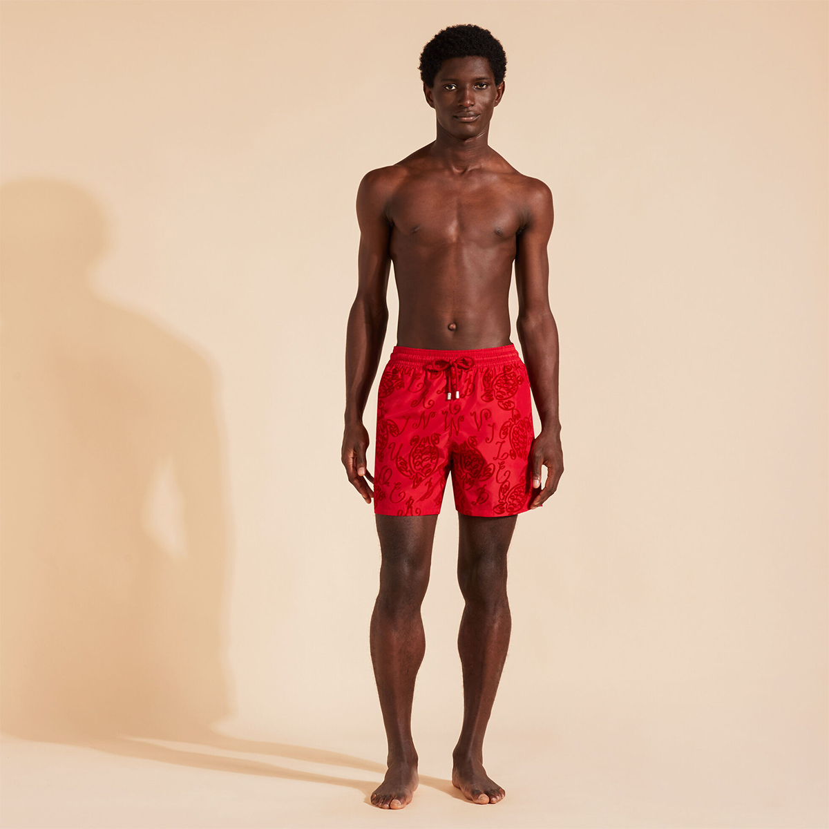 Bu çok hafif kumaşı ile dikkat çeken mayo, katlanarak arka cebine sığıyor ve üzerinde kauçuk Vilebrequin logosu yer alan bir keseye dönüşebiliyor.