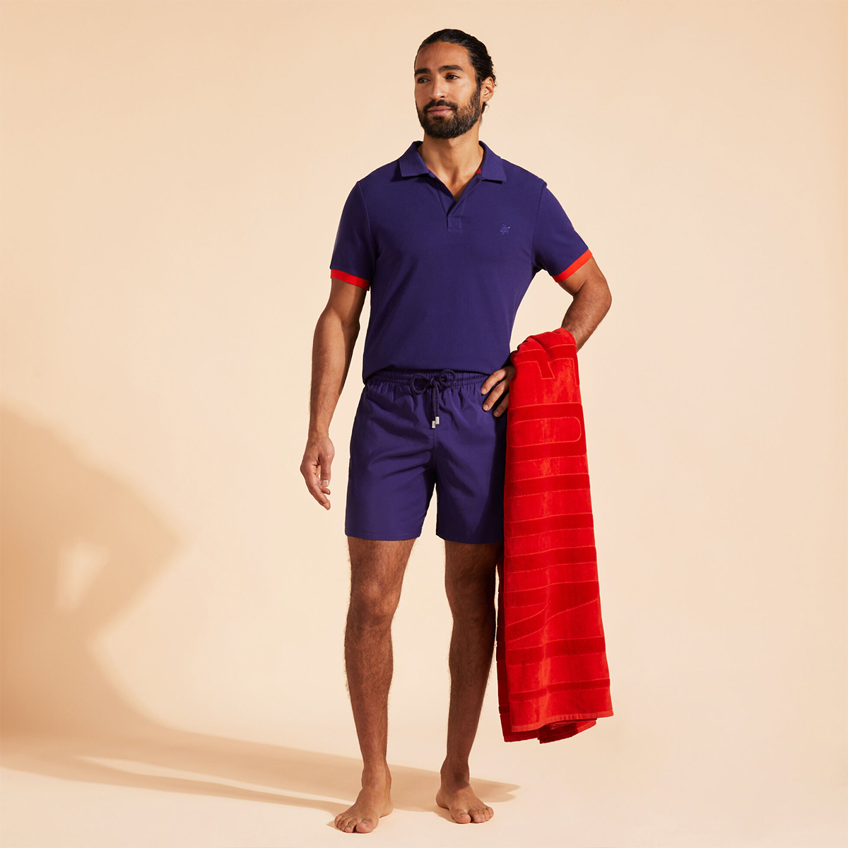 • İpli elastik bel bandı, bel arkasında ikonik Vilebrequin logo