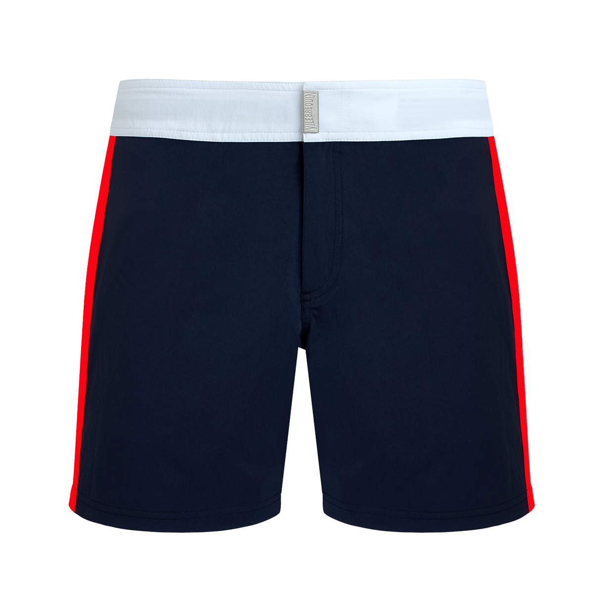 Çabuk kuruyan streç kumaştan üretilen Merle üç renkli erkek yüzme şortları, Vilebrequin logolu dikdörtgen bir düğmeyle sabitlenen, kontrast oluşturan düz bir bel bandına sahiptir. Yanlardaki bantlar cepleri vurgular. Bu yüzme şortları ayrıca cırt cırtlı bir arka cebe sahiptir.