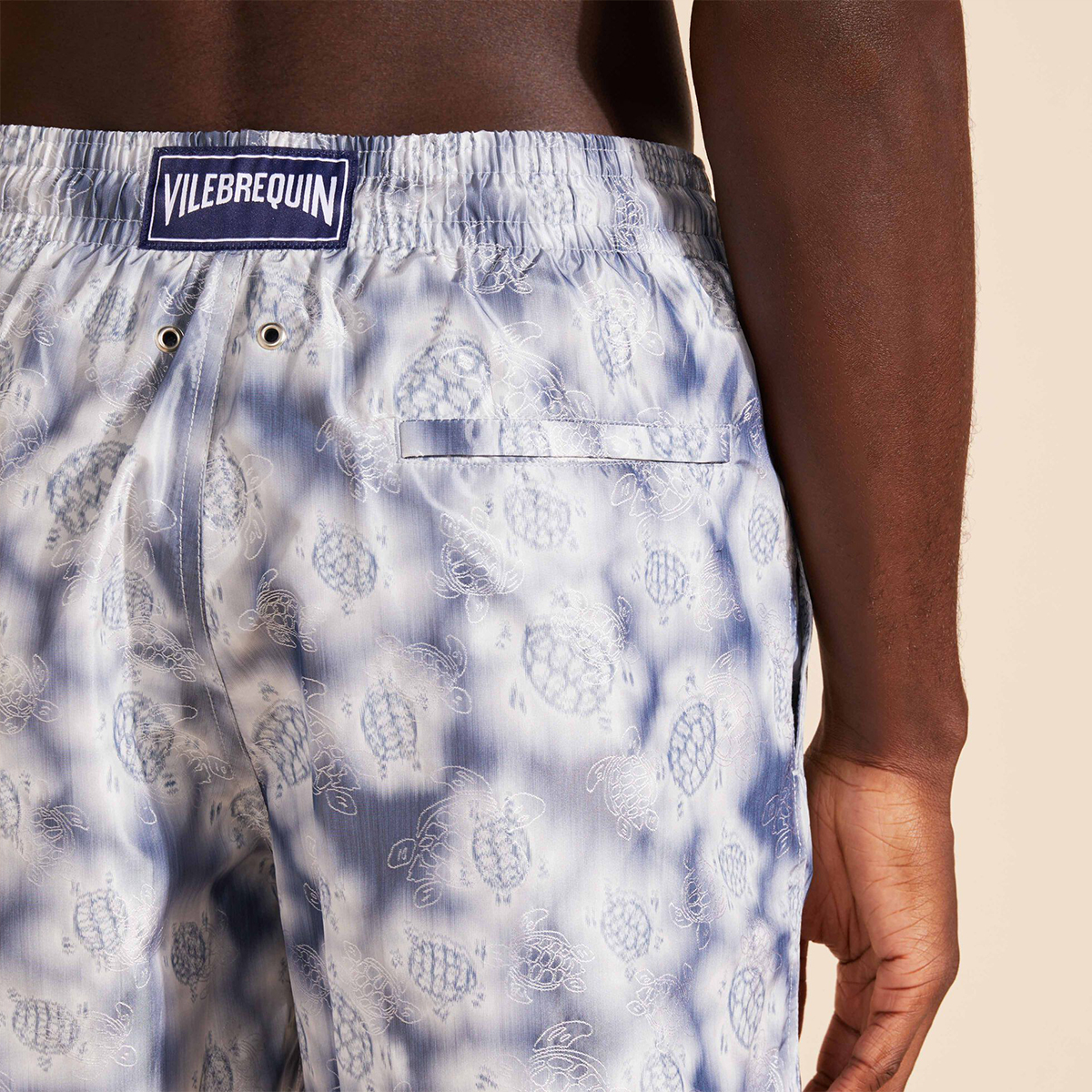 Vilebrequin ve Maison BUCOL, biraz hayal gücü ve üç yıllık araştırma ve geliştirmeyle, güneş ışığına, tuzlu suya ve klora karşı dirençliyken ipeğin benzersiz hissini ve görünümünü koruyan yenilikçi bir ipek ve geri dönüştürülmüş polyester karışımına öncülük etmeyi başardılar. Bu işbirliğine özel üretilen bu kumaş, renk derinliği ve zenginliği, kumaşı ve boyayı birbirine bağlayan ek bir süblimasyon baskı aşamasıyla elde edilir.