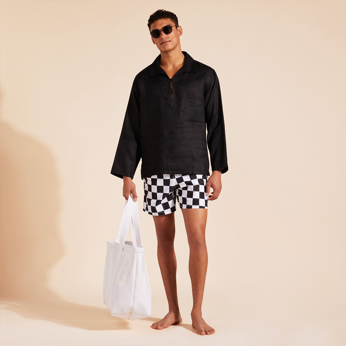 Vilebrequin’in ikonik, 1970’lerden gelen, Vilebrequin ruhuna sadık ve en sevilen stili. Yumuşak, çabuk kuruyan kumaştan yapılmış bu mayo, iki yan cebi ve arka cebi ile konfor sunuyor. Elastik bel kemerli mayo ve Zamac uçlu büzme ipi ile stil tamamlanıyor.