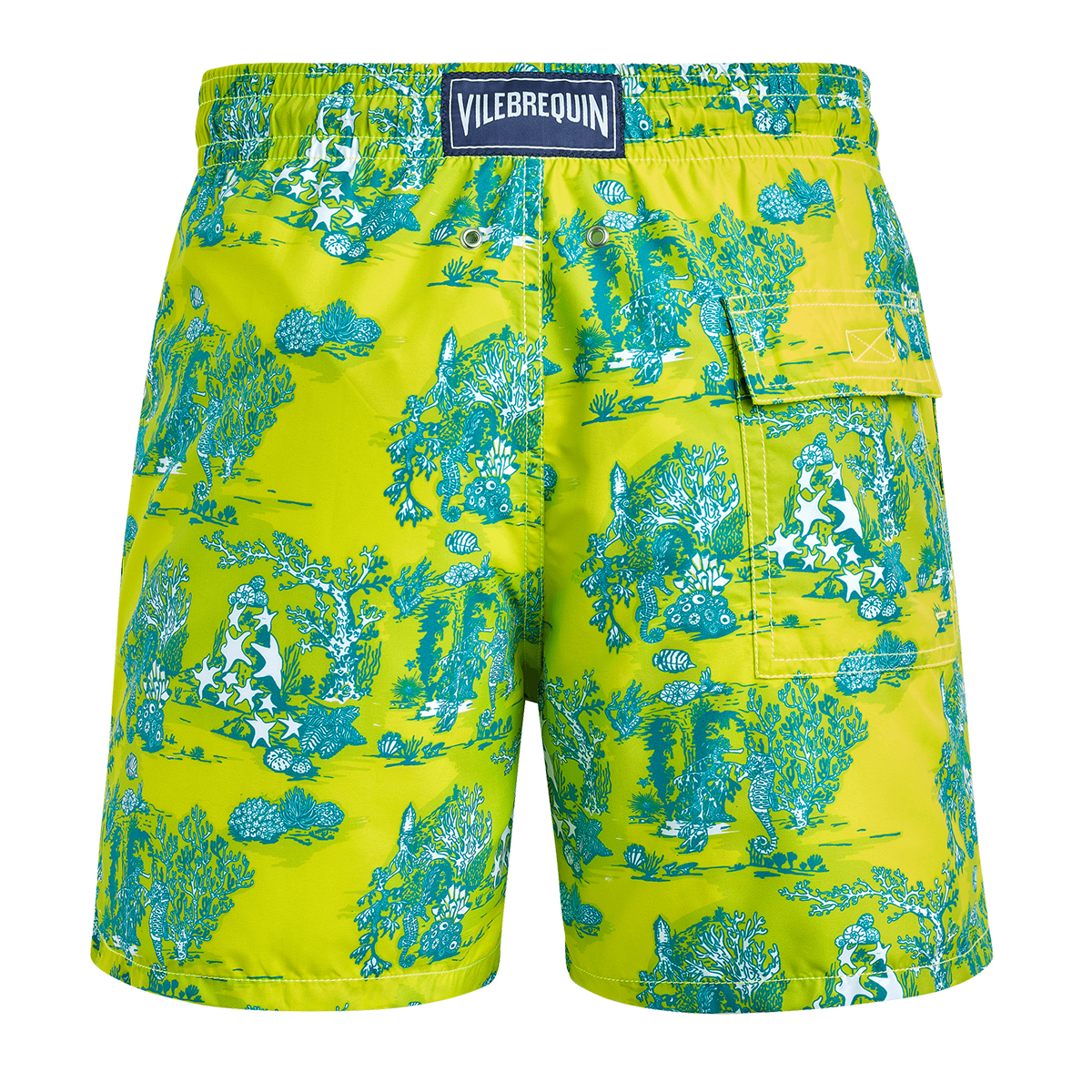 Vilebrequin’in ikonik, 1970’lerden gelen, Vilebrequin ruhuna sadık ve en sevilen stili. Yumuşak, çabuk kuruyan kumaştan yapılmış bu mayo, iki yan cebi ve arka cebi ile konfor sunuyor. Elastik bel kemerli mayo ve Zamac uçlu büzme ipi ile stil tamamlanıyor.