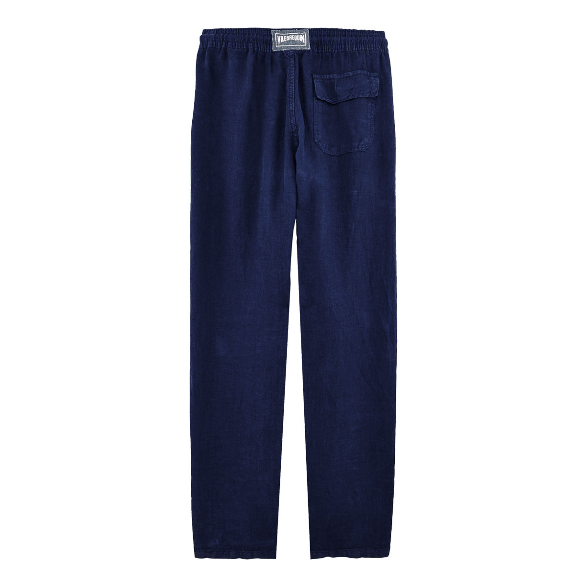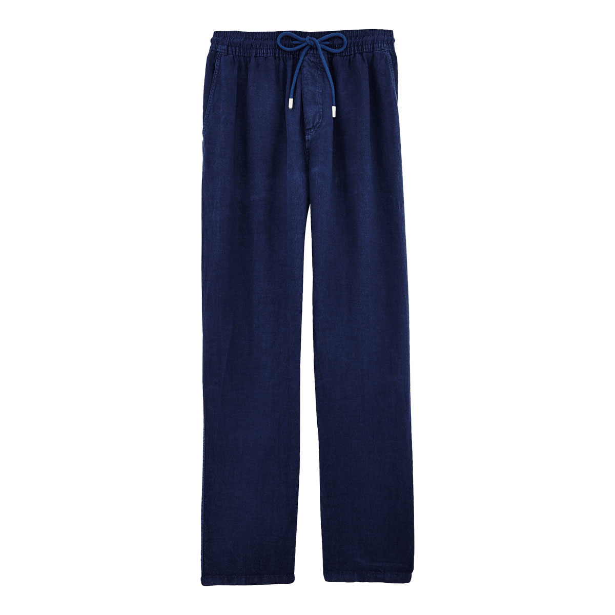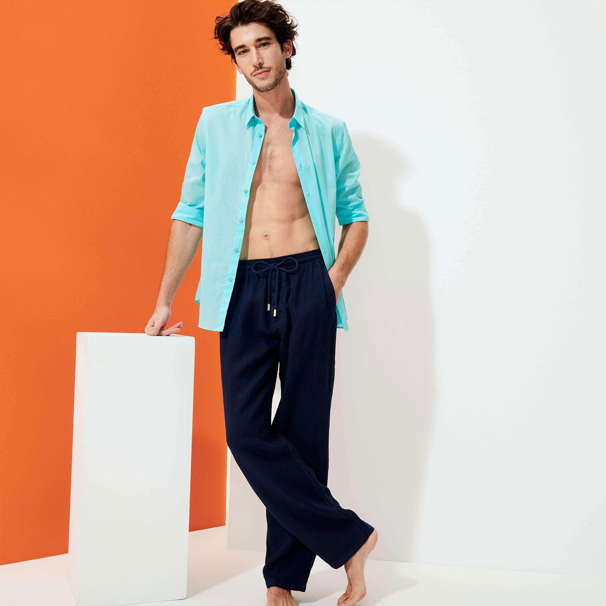 Esnek hatlarıyla Pacha keten erkek pantolonu, gündüz ve akşam kullanım için idealdir. Yüksek kaliteli keten kumaştan yapılmış, metal uçlu tonlu bir büzme ipi ile süslenmiş elastik bir kemere sahiptir.