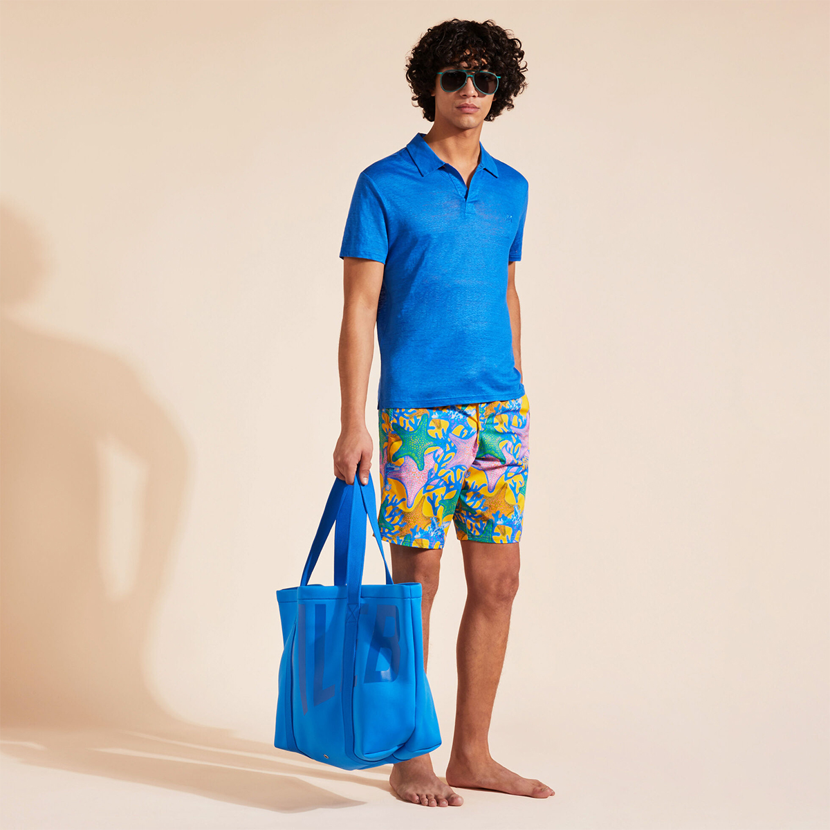 Hafif, %100 keten kumaşıyla Vilebrequin Pyramid erkek polo tshirt, gündelik kıyafetlere ve plaj kombinlerine şık bir dokunuş katar ve hafifliğiyle çok sıcak günler için idealdir. Basit ve şık düz kesimi, göğüste aynı tonda ikonik kaplumbağa logosu ile tamamlanıyor.