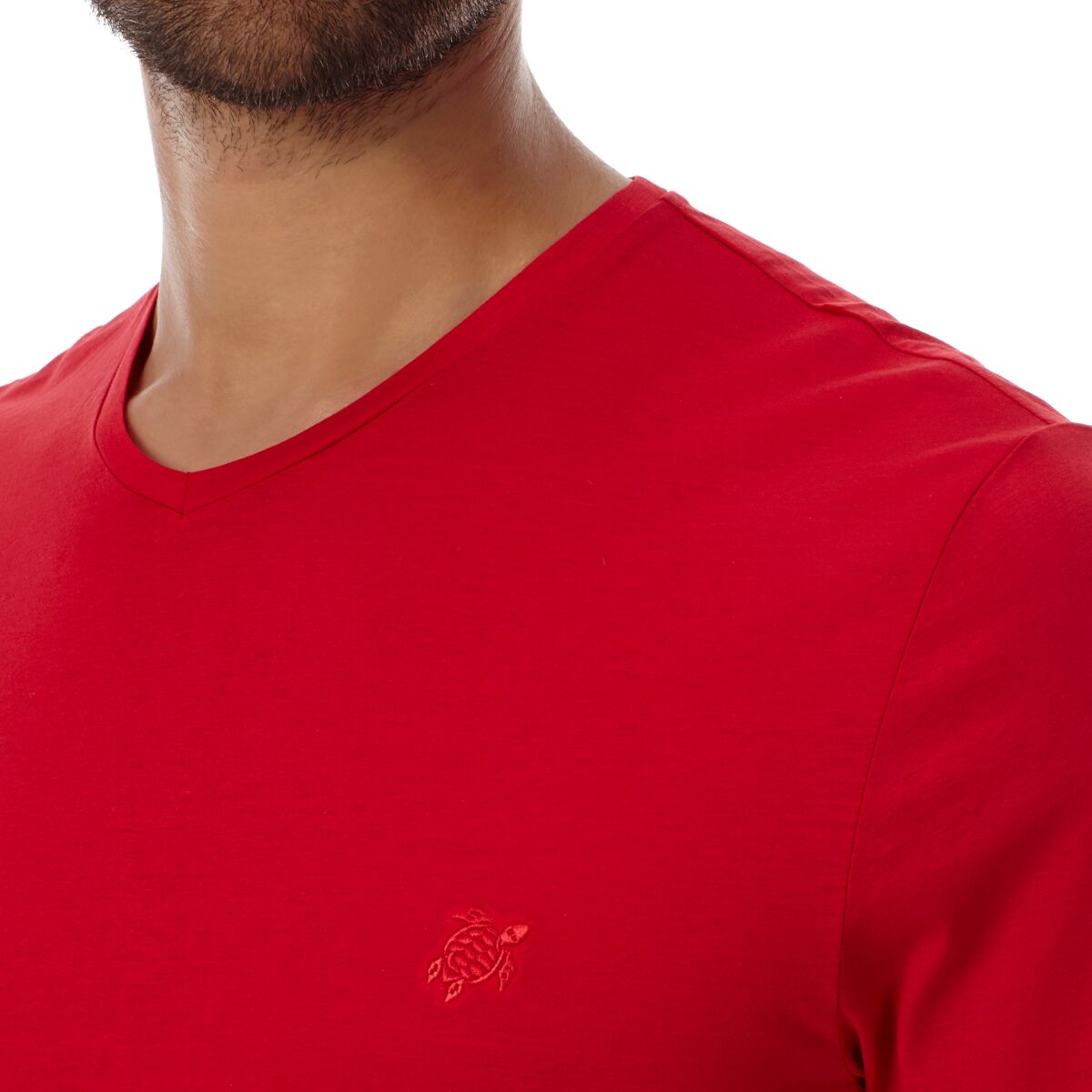 Sade ve rahat Tender erkek tişörtü, merserize pamuğun rakipsiz konforunu sunar. Kısa kollu ve V-yakalı bu Vilebrequin tişörtün sırtında iki metal delik detayı ve göğsünde aynı tonda işlemeli ikonik kaplumbağa logosu vardır.