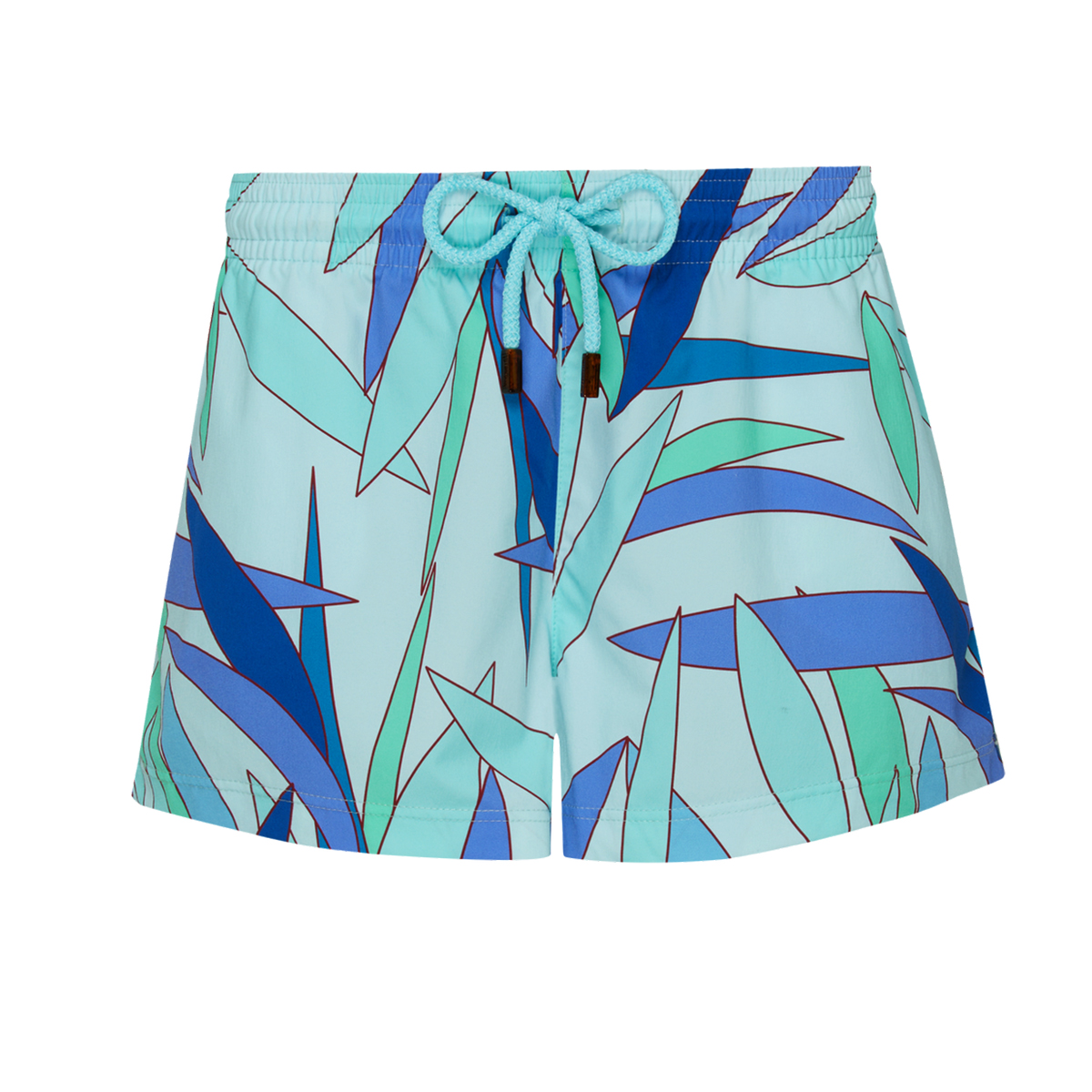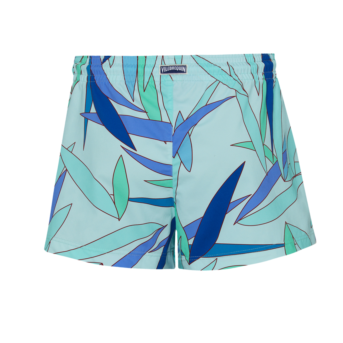 Rahatlık için esnek kumaştan üretilen bu renkli kadın mayo şortlarının arkasında ikonik Vilebrequin logosu yer alıyor ve daha fazla ayrıntı için kazınmış uçlarla tamamlanıyor.