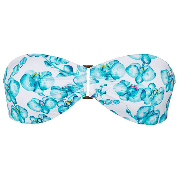 Bu Lune Orchidées kadın bikini üstü üzerindeki çiçekler romantik bir hava katıyor. Yerleşik kupları ve kaymaz sistemi sayesinde oldukça rahat olan bu straplez bikini üstünün önünde halka detayı ve arkasında klipsi vardır.