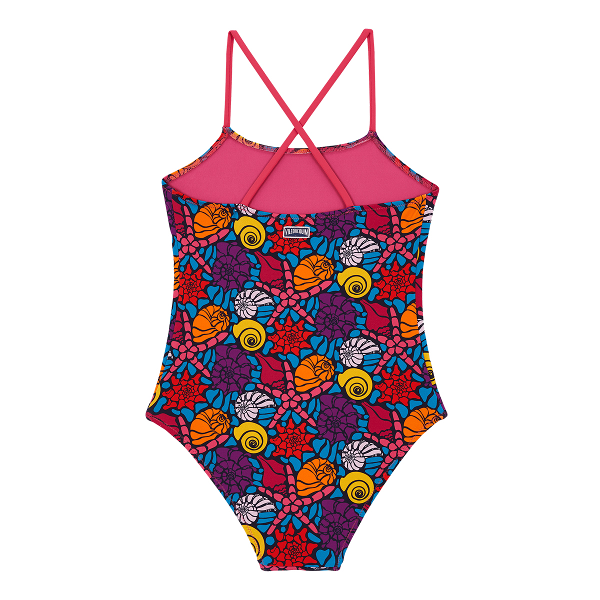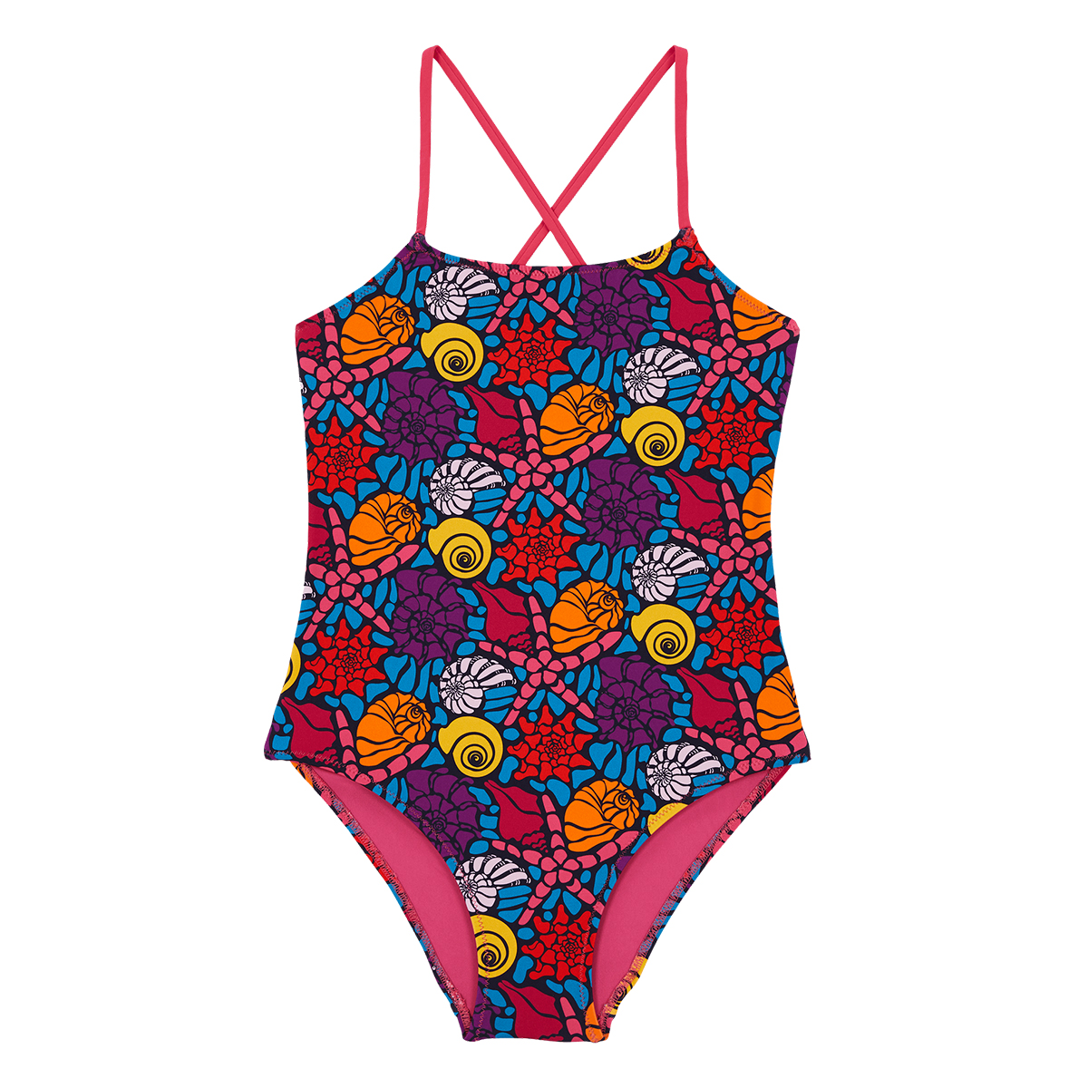Yazı bu baskılı kız çocuk mayosuyla kucaklayın. Çapraz omuz askılarına sahip bu şık parça, geri dönüştürülmüş poliamid ve elastandan üretilmiştir.