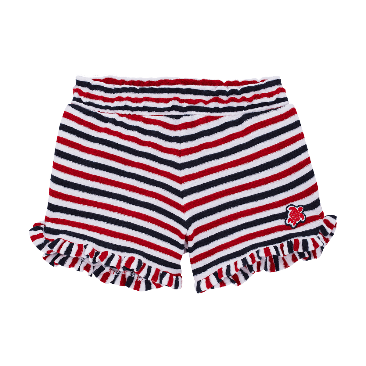Kızlar için tasarlanan bu yumuşak havlu kumaştan pamuklu bermuda şortlar, plaj günleri için mükemmeldir.
