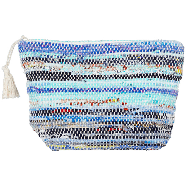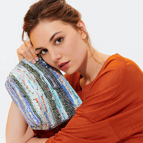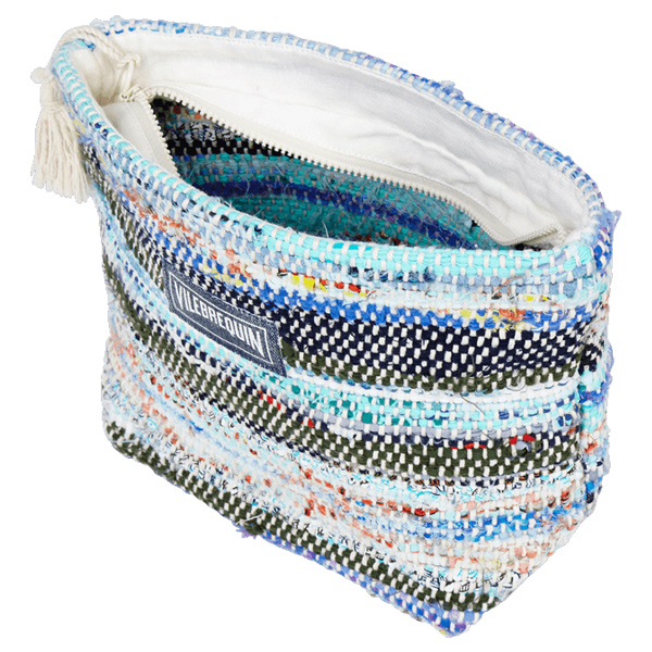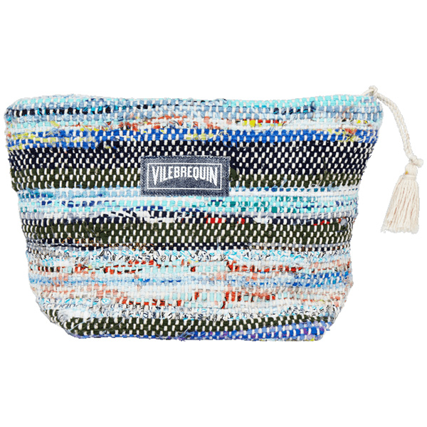Geri dönüştürülmüş kumaştan yapılan çevre dostu unisex Pamboo plaj çantasıyla eşyalarınızı düzenleyin. El dokuması bu çanta, ponponla süslenmiş fermuarı ve Vilebrequin logosu ile dikkat çekiyor.