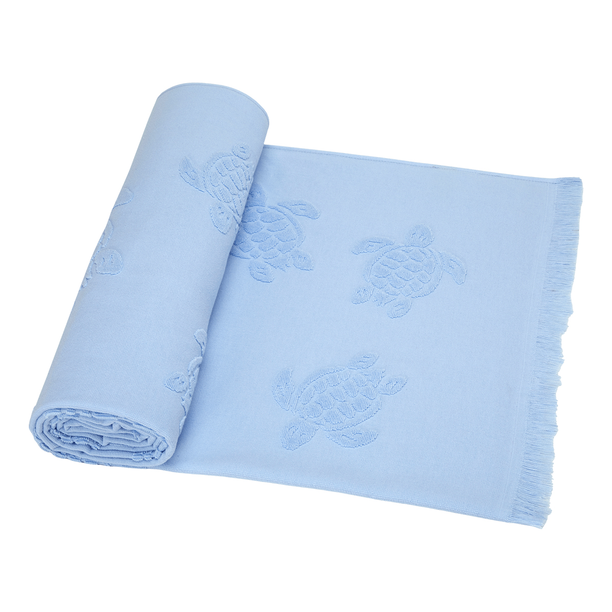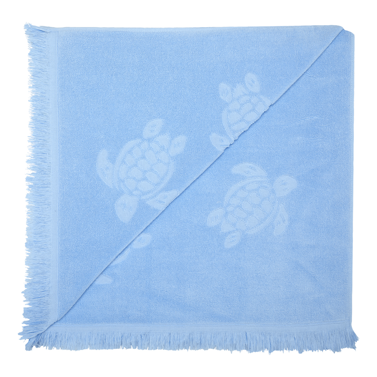 İkonik Vilebrequin kaplumbağaları, Santah unisex yetişkin havlularında yüzüyor. Bu zamansız pamuklu havlu yumuşak ve şıktır, aynı tonda dokuma jakar kaplumbağa desenlerine sahiptir.