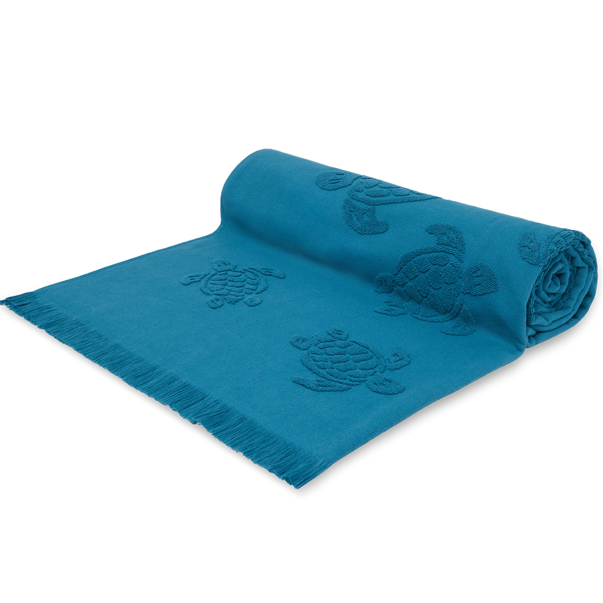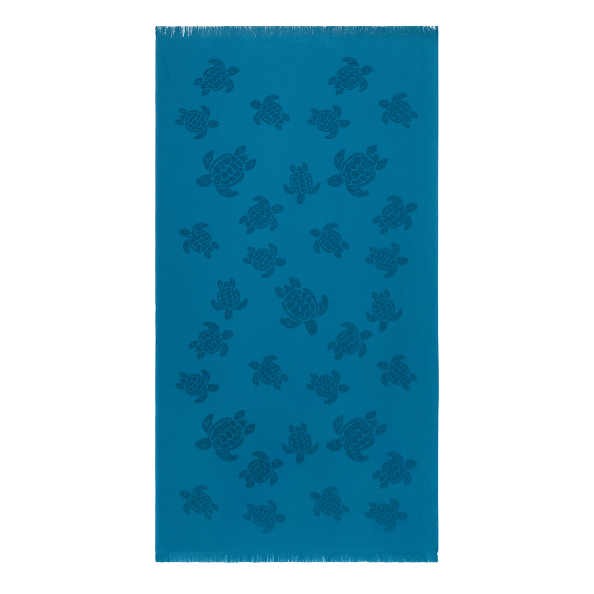 İkonik Vilebrequin kaplumbağaları, Santah unisex yetişkin havlularında yüzüyor. Bu zamansız pamuklu havlu yumuşak ve şıktır, aynı tonda dokuma jakar kaplumbağa desenlerine sahiptir.